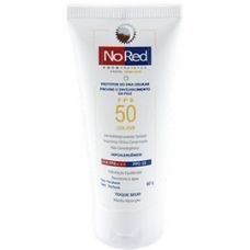 Protetor solar No Red 50 facial, com cor, de fácil aplicação e sensorial agradável. De textura leve, não oleoso, não comedogênico (não obstrui os poros, ideal para peles oleosas) e hipoalergênico.
